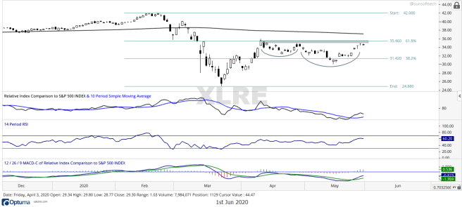 Breakout and restest of this pattern along with strong close above 61.8% and a break of 200 DMA will be bullish for all three sectors.