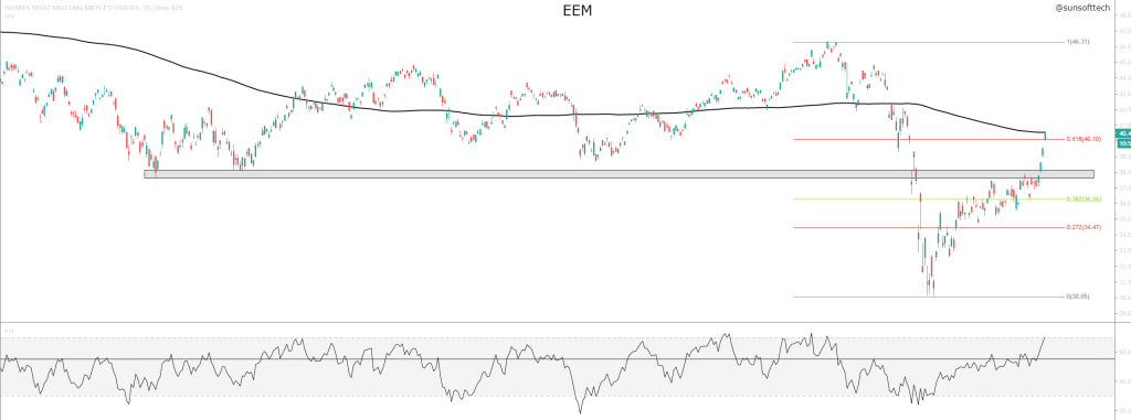 Copper – Emerging markets and Copper are correlated. Rising copper also means a possibly bullish EEM.
