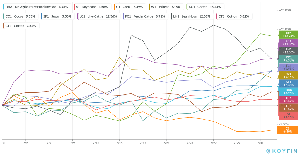 China has been buying large quantities of soybean and corn over last two months. The falling US Dollar has buoyed the demand for exports.